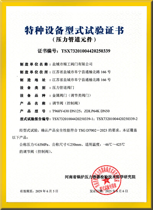 調(diào)節(jié)閥(控制閥)試驗(yàn)證書(shū)